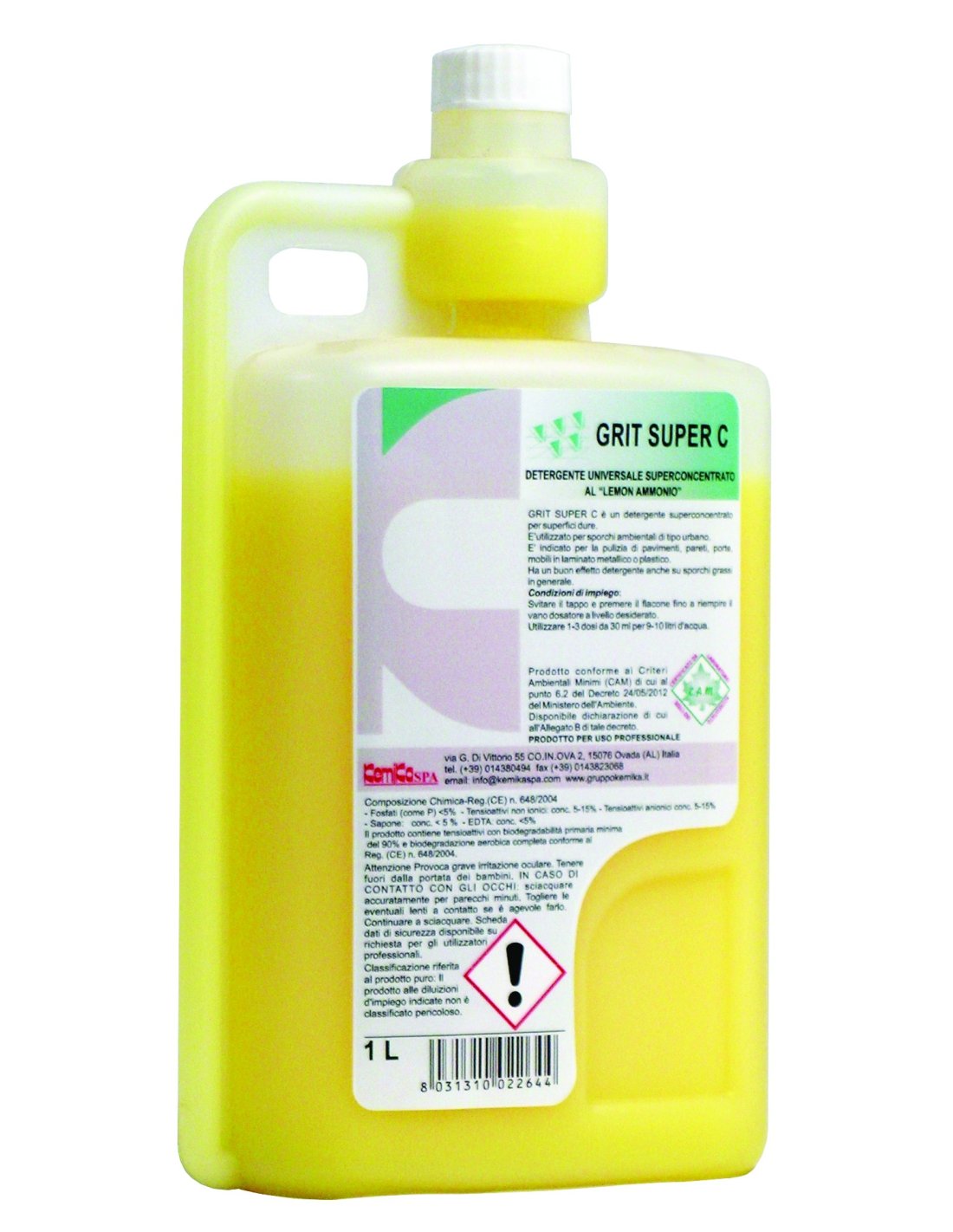 GRIT SUPER C è un detergente multiuso da utilizzare in uffici, fabbriche, convivenze, ecc.