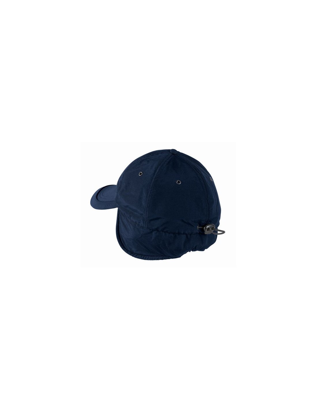 Cappello imbottito con coulisse di chiusura con clip posteriore alla nuca.
