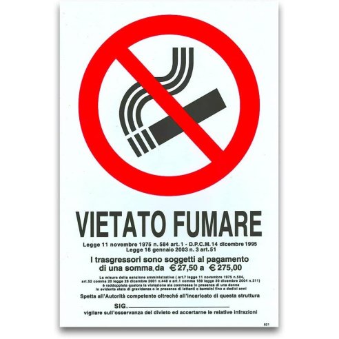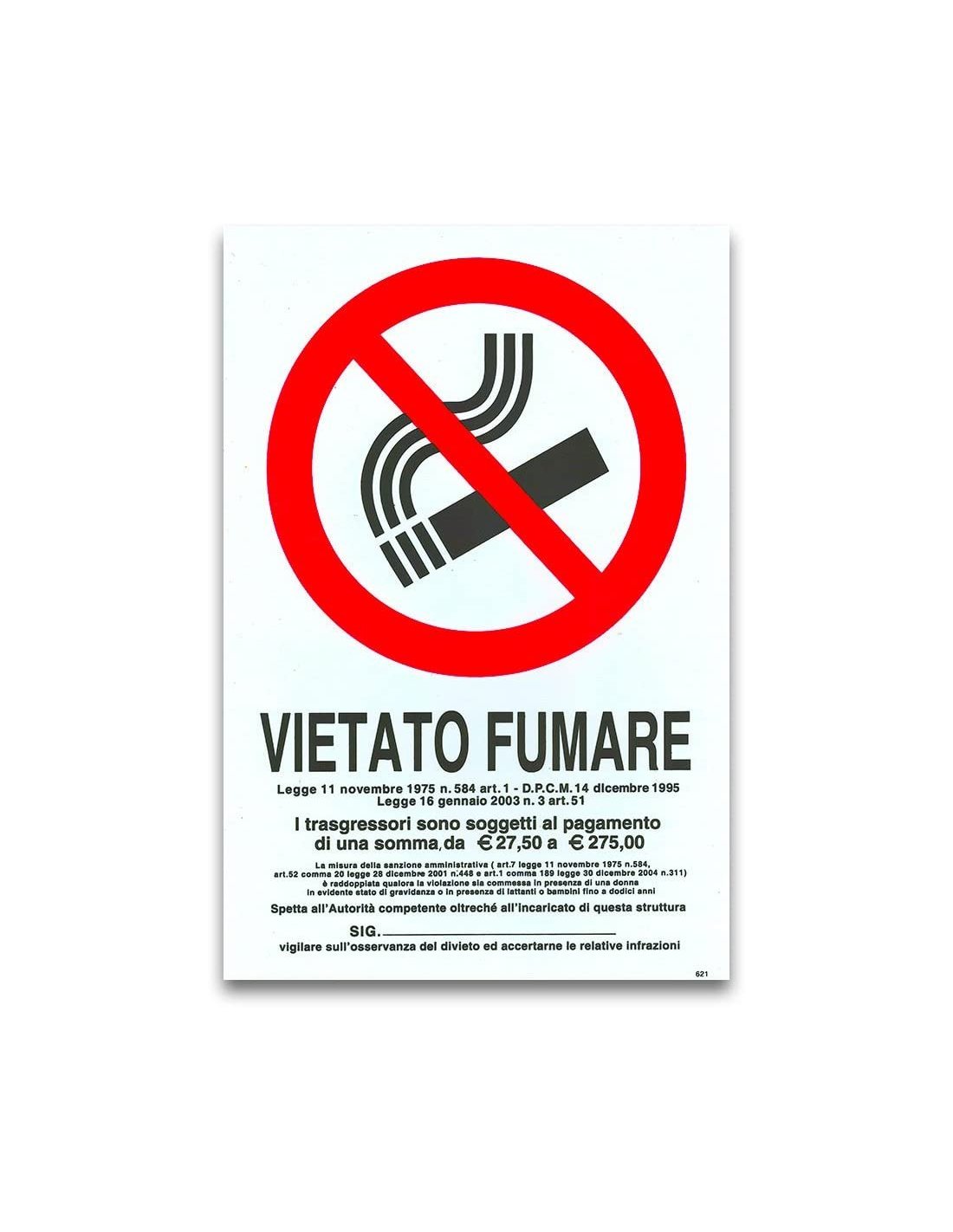 Cartello ''Vietato Fumare'' in plastica, sia per interni che per esterni.