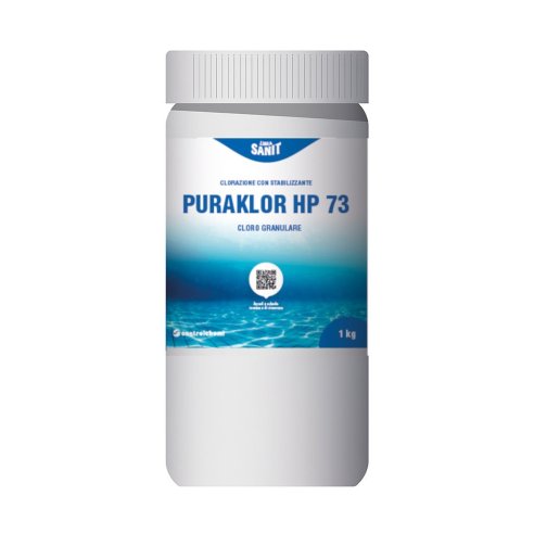 PURAKLOR HP73 è un cloro in granuli senza stabilizzante (assenza di Acido Isocianurico) per la clorazione dell’acqua di piscina.