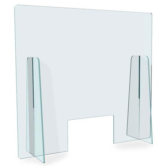 Espositore protettivo da banco o scrivania, realizzato in plexiglass trasparente da 5 mm.