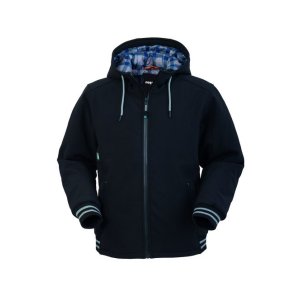 Giubbotto imbottito con chiusura anteriore con cerniera in plastica e con cappuccio.