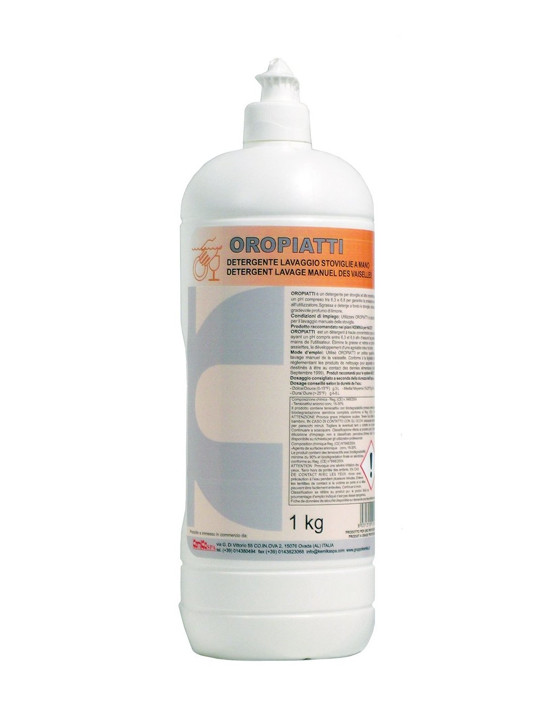 OROPIATTI è un detergente per stoviglie ad alta concentrazione, ha un pH compreso tra 6,3 e 6,8 per garantire la protezione delle mani all’utilizzatore.