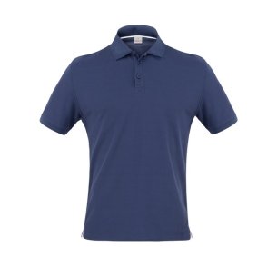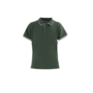 Polo mezza manica con fascia parasudore nella parte posteriore del collo, profili tricolore al collo, chiusa con tre bottoni, giromanica a costina con profili tricolore, spacchetti laterali al fondo con inserto tricolore.