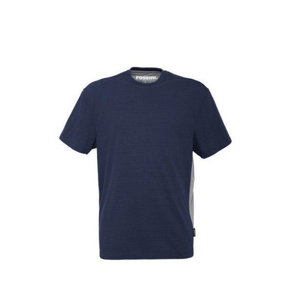 T-shirt mezza manica con fascia parasudore e lunetta di colore a contrasto nella parte posteriore del collo, girocollo a costine.