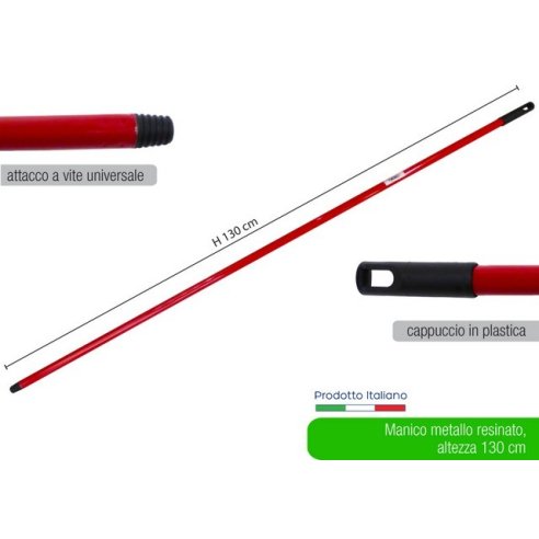 Manico in metallo plastificato con attacco a vite di 23 mm di diametro ed altezza di 130 cm.