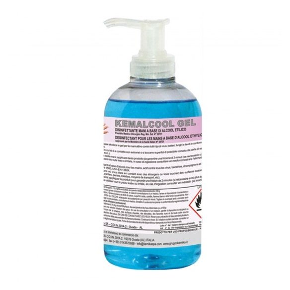 Kem-alcool gel è un disinfettante a base alcolica in gel per le mani, attivo contro tutti i tipi di virus, batteri, funghi e lieviti in conformità alle norme UNI-EN 14476, UNI-EN 13727, UNI-EN 1500, UNI-EN 13624.